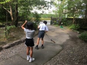 庭掃除も、見様見真似で!