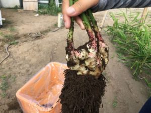 これは「生姜」です。まだ若い生姜で「新しょうが」と呼ばれるみたい。