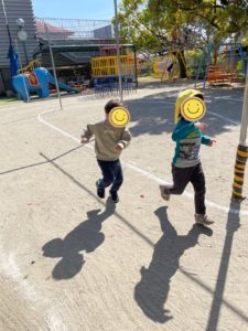 午前クラスでは園庭でかけっこをしたり、遊具で遊ぶ姿が…