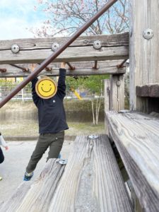 午後グループではお散歩に行くクラスもあり、遊具を使ってダイナミックに遊んでいましたよ。