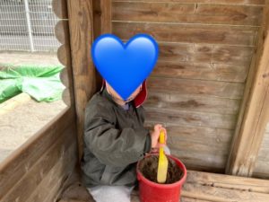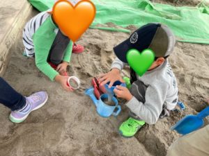 お友達みんなで砂場遊びをする姿がありました。