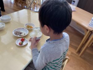 外でたくさん遊んだ後は美味しい給食が待っていました!
