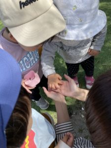 新聞紙遊びの後は未満児園庭に行きました。