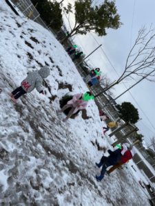 園庭を歩き、築山に登ったり、雪を使って遊んだり・・❄️