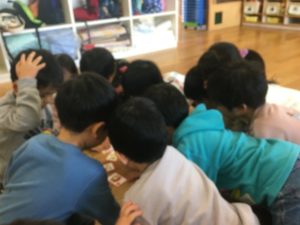 どんどん取っていきます!取りたくてどんどん前に進んで最初は大きな輪だったのに最後にはギュウギュウ詰めで座るかぜ組さんでした。まだしたいなあ〜と子どもたち。