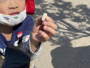 園庭に落ちている軽石を探しているお友達。
