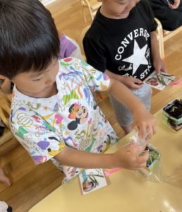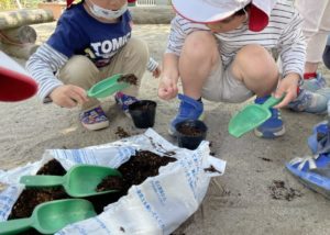 これは、あさがおの種を植えている様子でした。