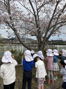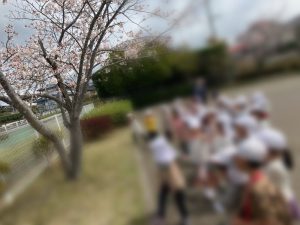 ひらひら~っと花びらが落ちるのを見て、キャッチしようと頑張るお友達もいました。