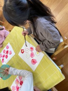 今日は製作。梅の花を描きました🌸
