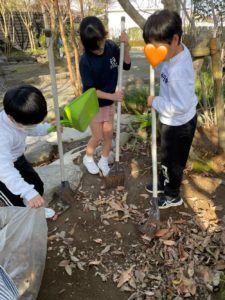 外の掃除も、協力して