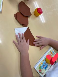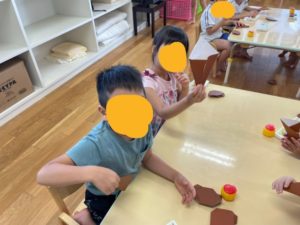 プールを待っている間は、十五夜制作でたぬきの折り紙を作りました。