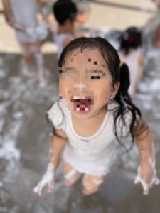 昨日は泡遊びをしました。
