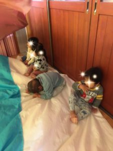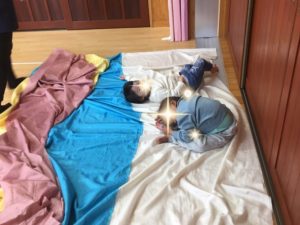先生と一緒に、いないいないバァっと、布かくれしてあそびました🤗