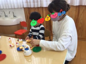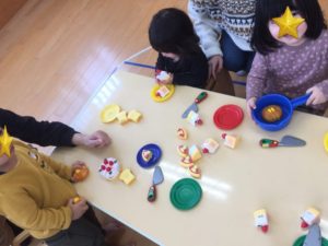 ごりらの教室は母子活動で、おままごとあそび❣️