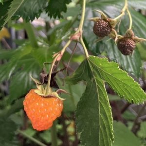 オレンジ色の木苺が実っていました。