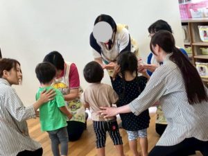 その後みんなでふれあい遊び🎶からの仕上げ磨きの実践練習🪥