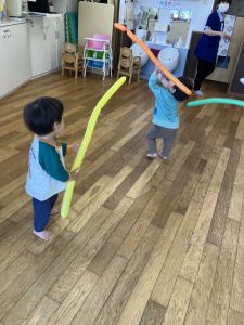 なが〜い風船を持ってえいやー!って振ってみたり飛ばしてみたり…