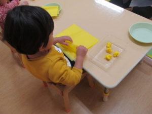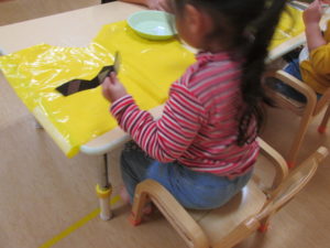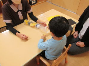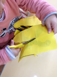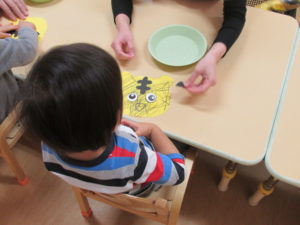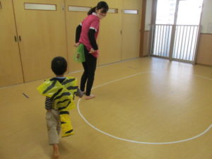 2歳児、年少グループは、「トラのチョッキとしっぽ」