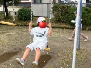 滑り台で遊びました。