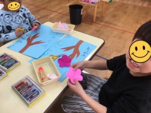 最後は、めしべの部分をシールで貼ると完成❣️