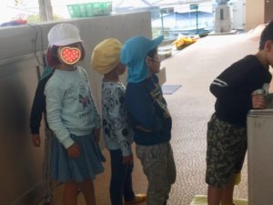 水分補給で水飲みするところでも、順番を待ちます👏