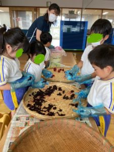 6月から、ほし組さんとかぜ組さんで作っている梅干しです。