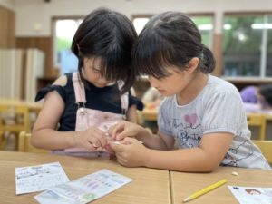 メッセージカードを書きながら、