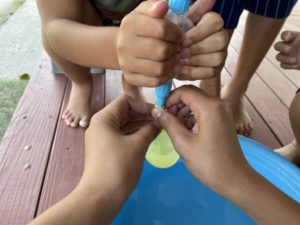 友達と水風船を作って