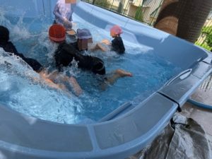 プールもあり、日直さんを前に体操も