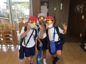 いつもと違って、体操服にリュックサック🎒姿の子どもたち。
