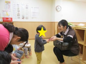 「どうぞ」と両手で渡すお友だち☆