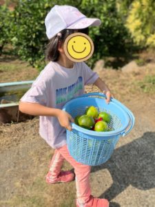 子どもたちは次々に収穫していき、、、重くなってきたかごをお母さんたちが一生懸命持っていました😊笑