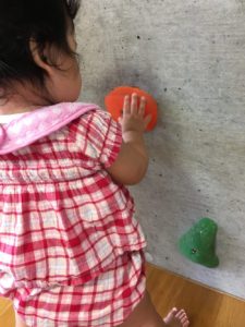 つかまり立ちをしているお友達や、上を見上げて石を掴もうとしているお友達がいました。