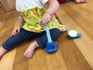 タンバリンや、ハンドベル、カスタネットがあり、好きな楽器を手に取っていました♪