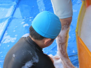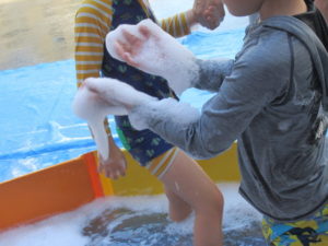 たくさんの泡の中で遊んだ子ども達♪