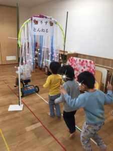 りす組の教室は、『りすトンネル』が設置され、自由あそびはトンネルくぐりをしていました😍