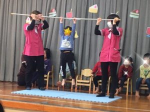 17日成長を祝う会3日目は、きりん組とくま組によるおゆうぎ『エビカニクス』でスタート🤗