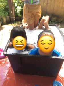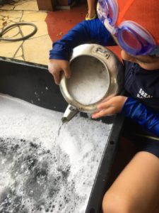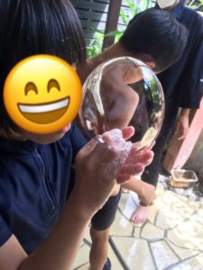 学童での水遊びも日々工夫して遊び、いろんなことを発見しています。