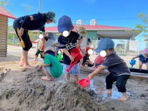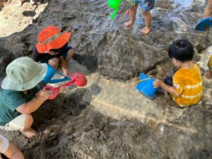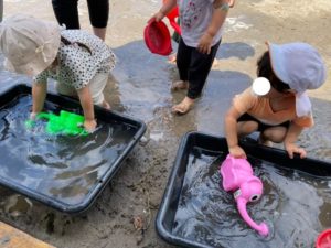 今日は泥んこ遊びをしました♪