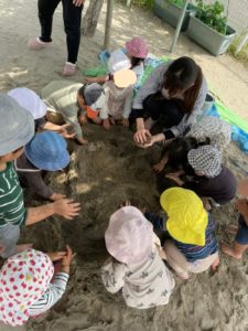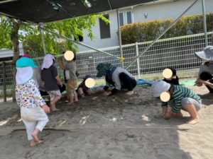 裸足になり、砂場で遊びました☀️