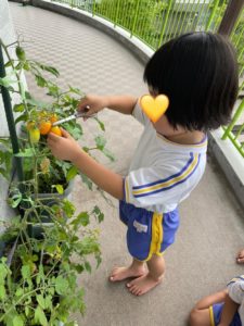 給食には収穫したトマトが🍅