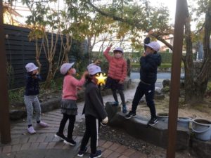 掃除を終えて、元気よく外に飛び出す子どもたち・・・