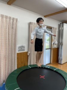 トランポリンでは技を披露する人が多く