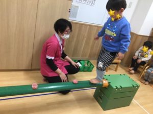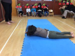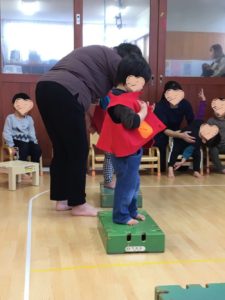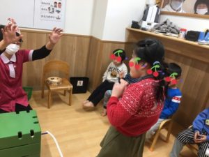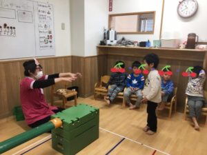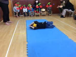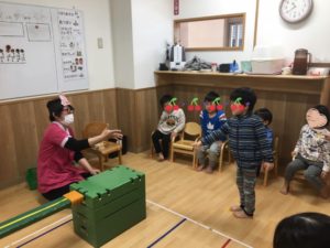 教室でのお披露目となったお友達、まずはきりん組🦒おはなしあそび『負けないぞ』