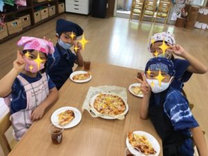水遊びの後は、ピザ作り!