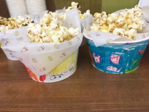 子どもたちの希望で、ポップコーンを食べながら