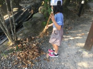 先日の2年生の掃除の様子を真似ながら、