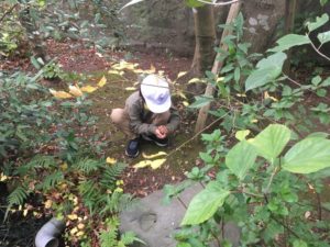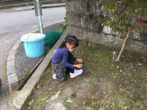 土の色によく似た椎の実を真剣な眼差しで探しています👀