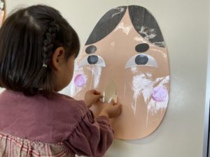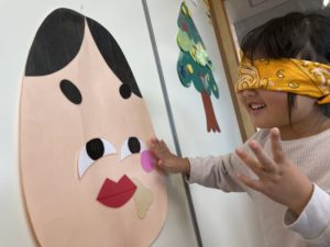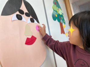 今日はその導入遊びで、大型福笑いをしてみました♪