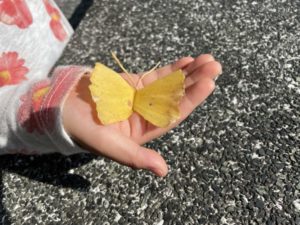 いちょうの木の葉が落ちていたので、蝶を作ってみました^^